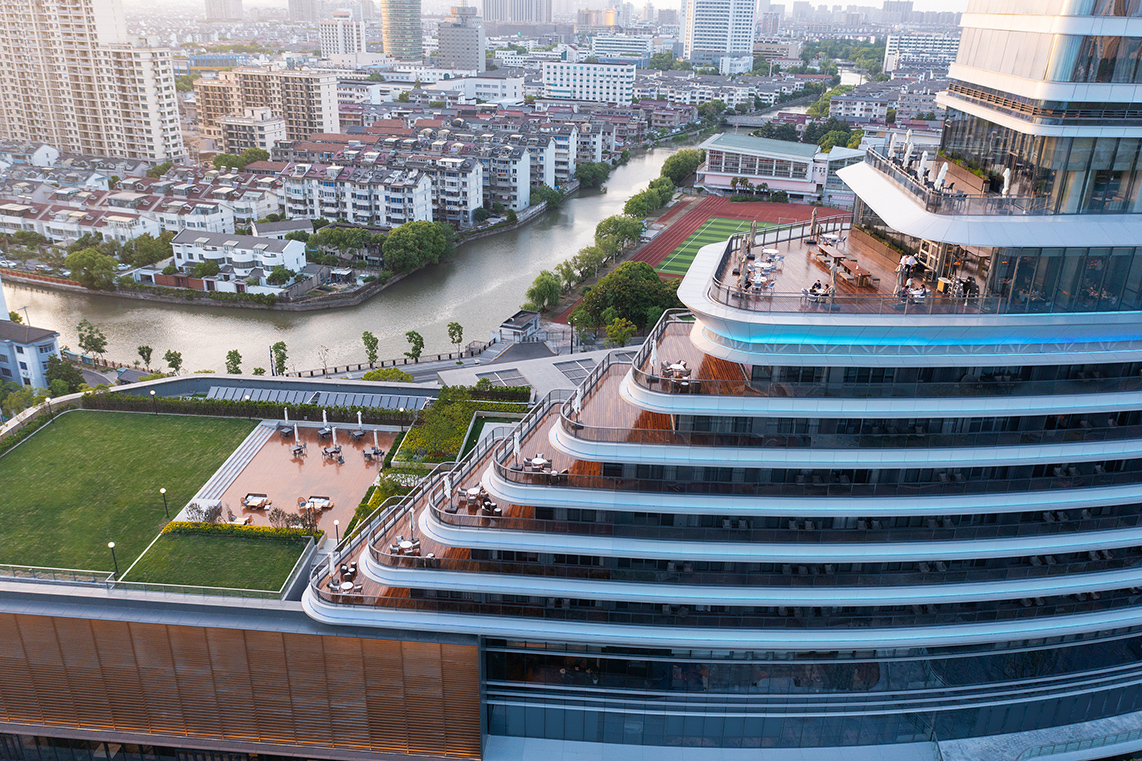 建筑造型現代大方,立面比例優雅且考究,形體流暢亦富有動感。擬態郵輪的造型充滿揚帆起航的朝氣,與琴湖風光相得益彰,相輔相成。運用陽臺及多層次、多種類的線腳等裝飾細節,打造簡潔與精致為一體的立面形象。使建筑成為琴湖區域獨特的風景線,成為本地區一個標識性的打卡地。